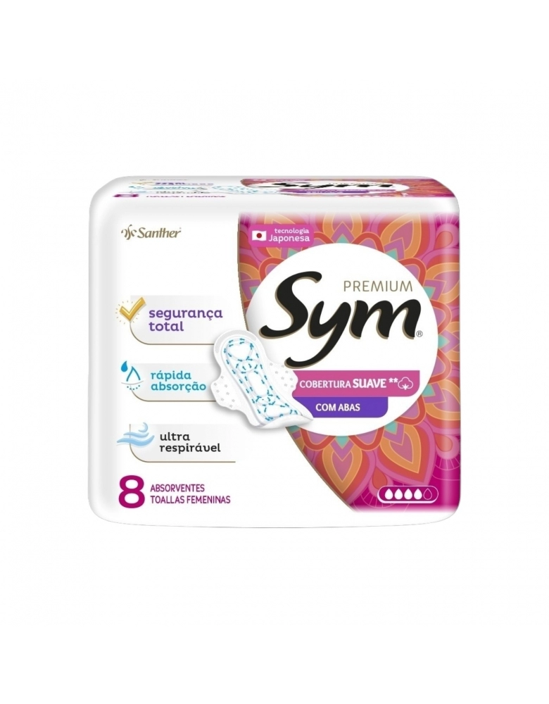 HIGIENE E PERFUMARIA>HIGIENE PESSOAL>ABSORVENTE>ABSORVENTE SYM PREMIUM SUAVE C/ABAS C/8UN