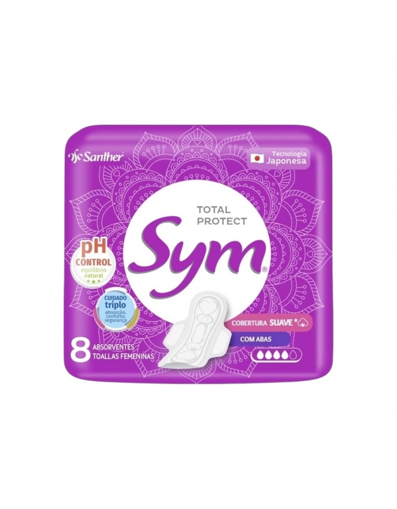 HIGIENE E PERFUMARIA>HIGIENE PESSOAL>ABSORVENTE>ABSORVENTE SYM SUAVE C/ABAS C/8UN