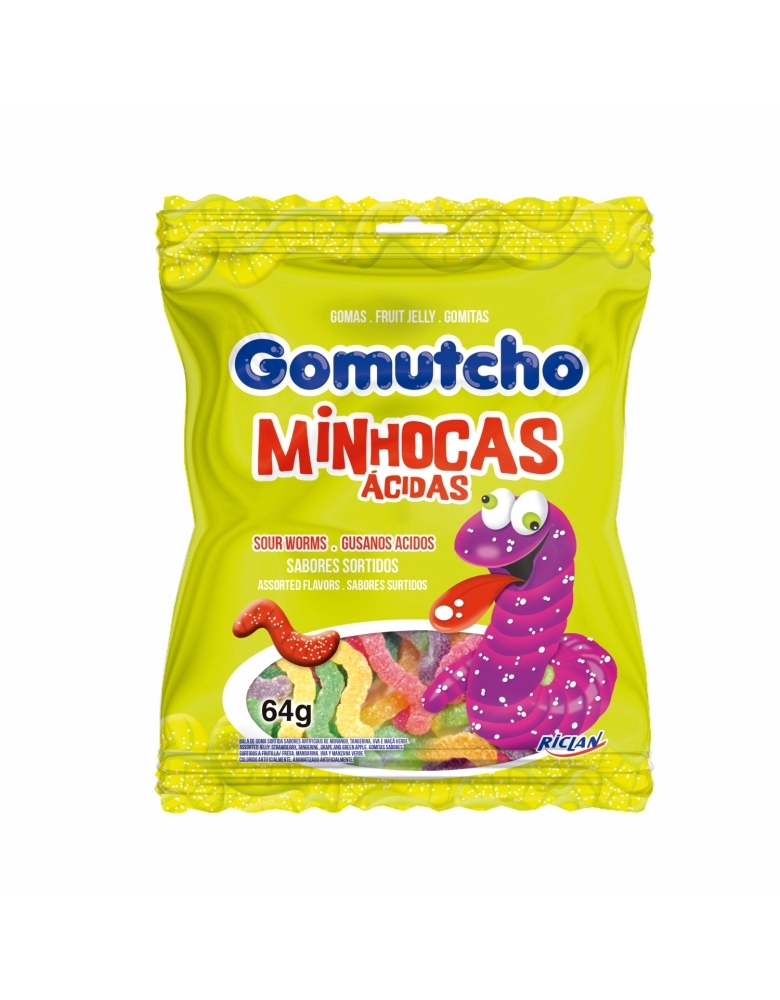 ALIMENTO>DOCES E CHOCOLATES>BALA GOMA>BALA GOMUTCHO MINHOCA ACIDAS 64G