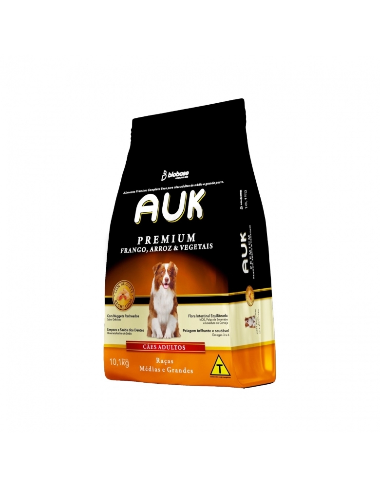 LINHA PET>RAÇÕES>CÃO>RAÇÃO AUK PREMIUM RAÇAS MEDIAS E GRANDES 10,1 KG