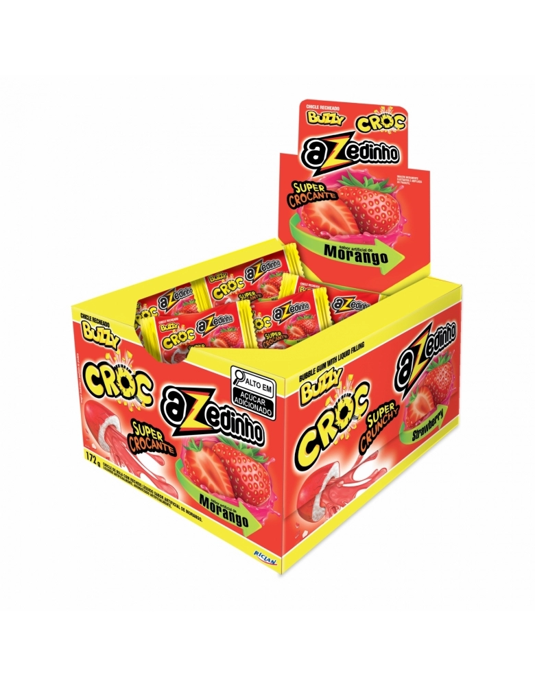 ALIMENTO>DOCES E CHOCOLATES>CHICLE>CHICLE BUZZY CROC AZEDINHO MORANGO 40UN