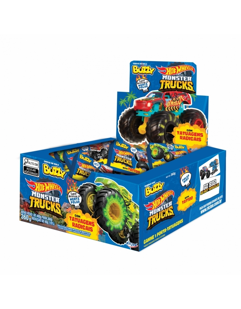 ALIMENTO>DOCES E CHOCOLATES>CHICLE>CHICLE BUZZY HOT WHEELS TATUAGEM MENTA 90UN