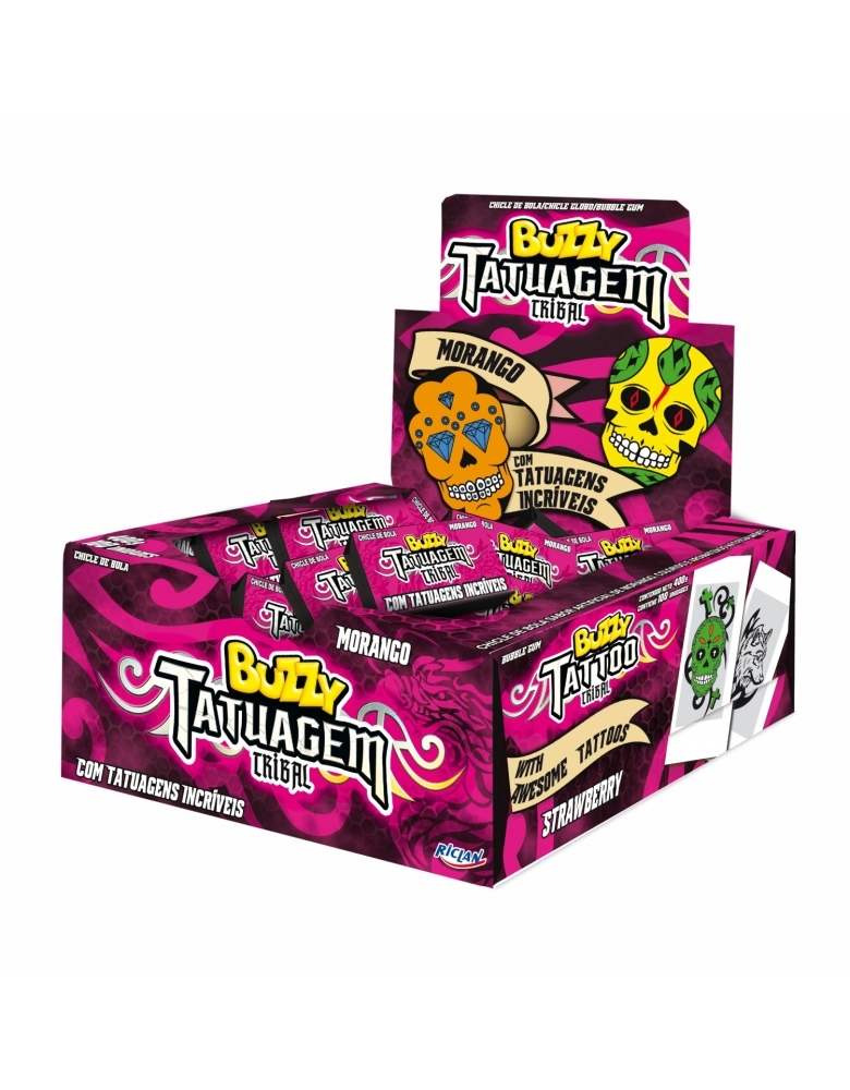 ALIMENTO>DOCES E CHOCOLATES>CHICLE>CHICLE BUZZY TATUAGEM TRIBAL MORANGO 100UN