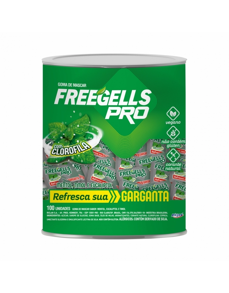 ALIMENTO>DOCES E CHOCOLATES>CHICLE>CHICLE FREEGELLS PLAY PRO EUCALIPTO POTE 100UN