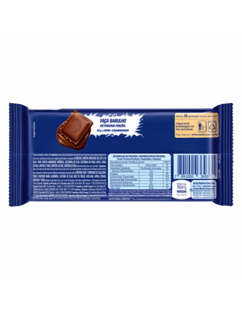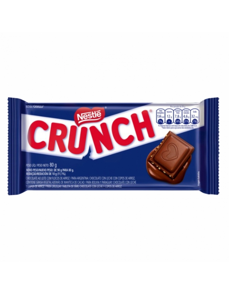 ALIMENTO>DOCES E CHOCOLATES>CHOC. BARRA>BARRA DE CHOCOLATE CRUNCH 16X80G