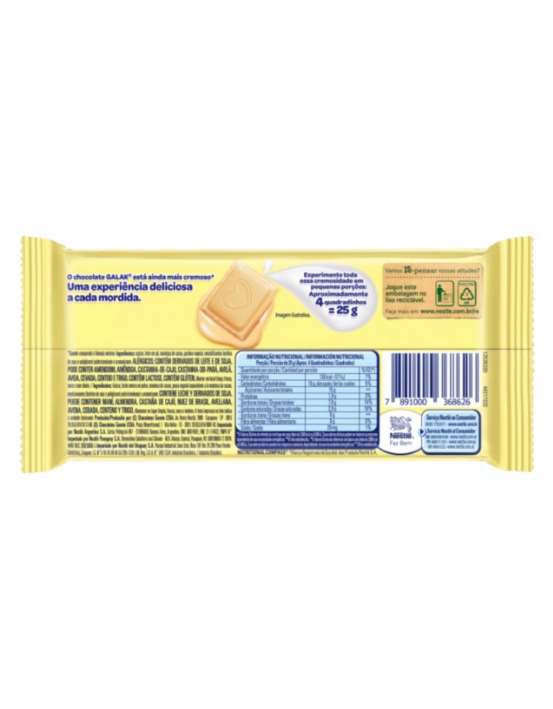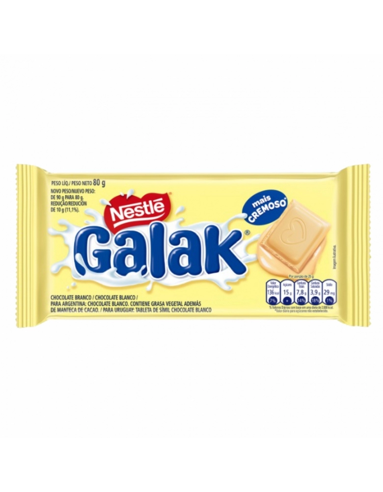 ALIMENTO>DOCES E CHOCOLATES>CHOC. BARRA>BARRA DE CHOCOLATE GALAK 16X80G