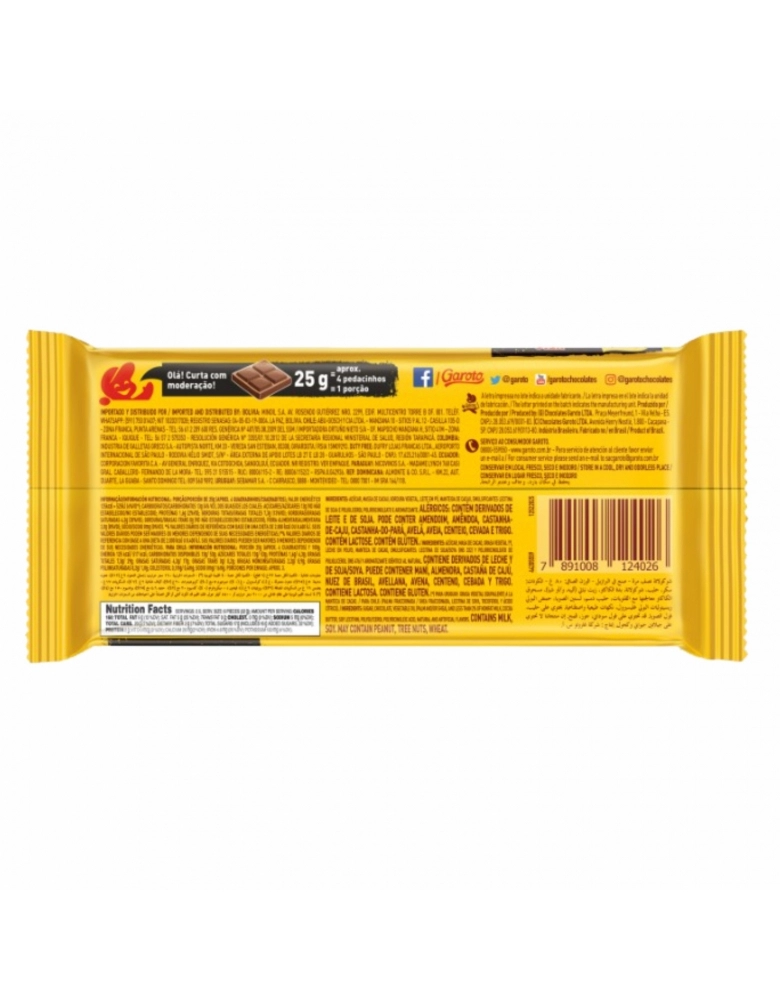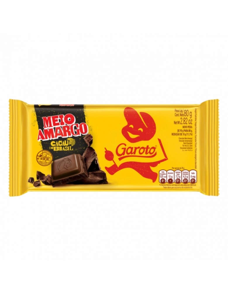 ALIMENTO>DOCES E CHOCOLATES>CHOC. BARRA>BARRA DE CHOCOLATE GAROTO MEIO AMARGO 16X80G