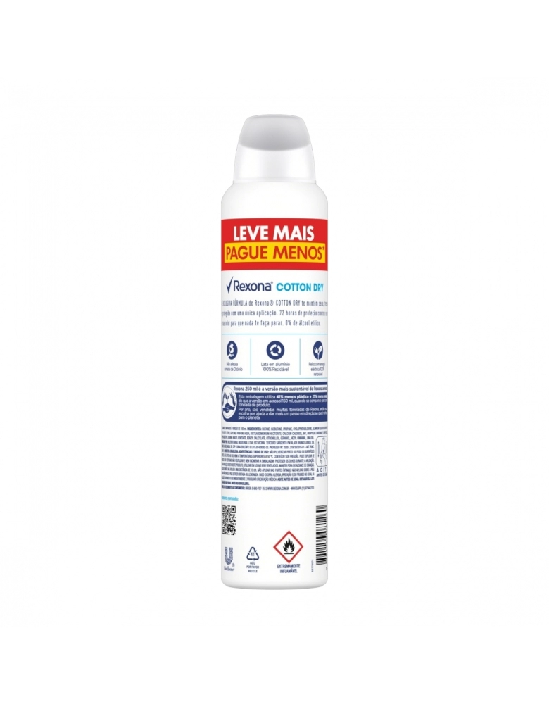 HIGIENE E PERFUMARIA>CUIDADOS PESSOAIS>DESODORANTE AEROSOL>DESODORANTE AEROSOL REXONA COTTON DRY 250ML