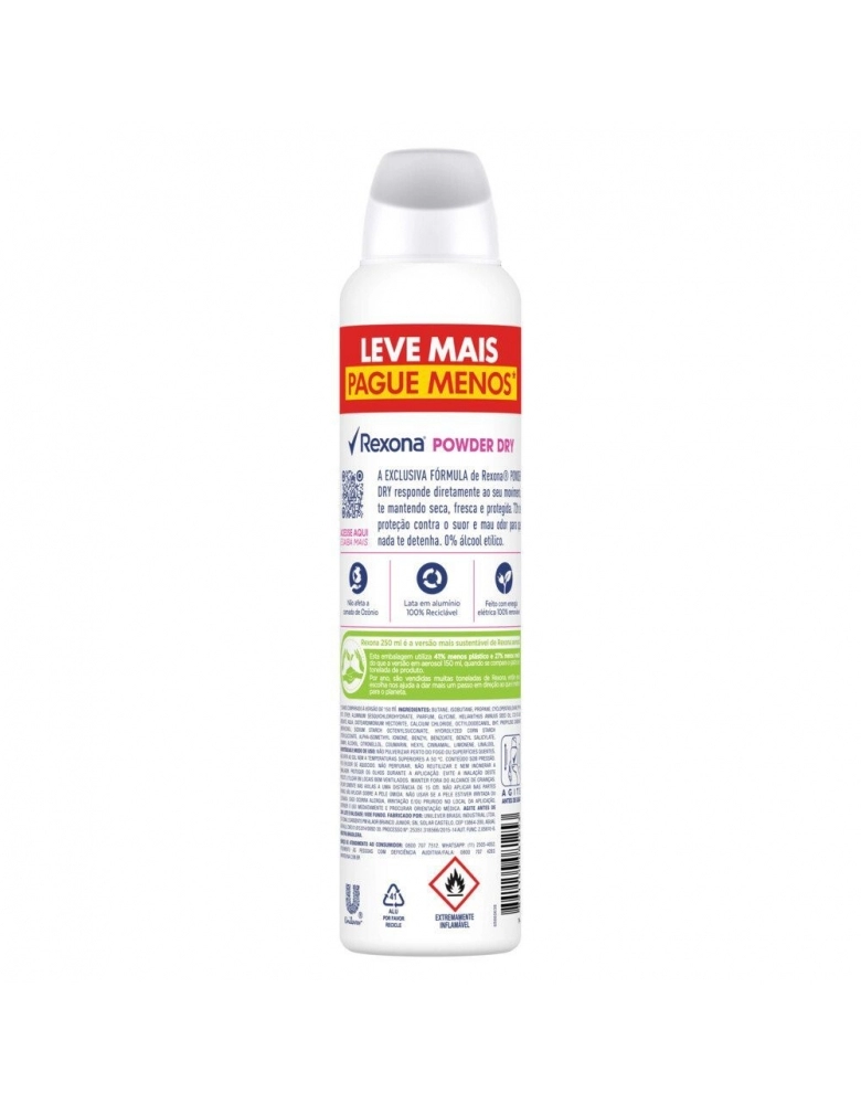HIGIENE E PERFUMARIA>CUIDADOS PESSOAIS>DESODORANTE AEROSOL>DESODORANTE AEROSOL REXONA POWDER DRY 12X250ML