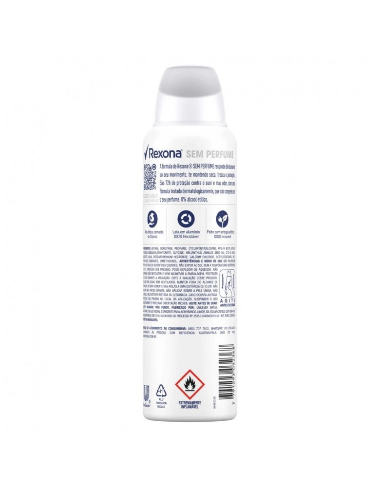 HIGIENE E PERFUMARIA>CUIDADOS PESSOAIS>DESODORANTE AEROSOL>DESODORANTE AEROSOL REXONA SEM PERFUME 12X150ML
