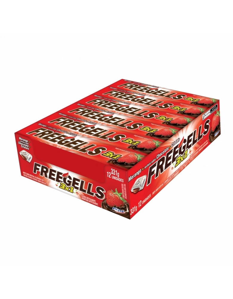 ALIMENTO>DOCES E CHOCOLATES>DROPS>DROPS FREEGELLS PLAY 3X1 MORANGO 12UN