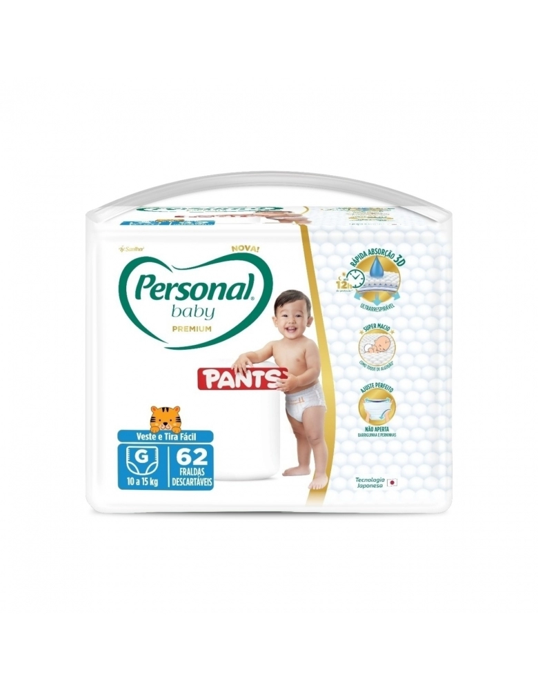 HIGIENE E PERFUMARIA>INFANTIL HP>FRALDA>FRALDA PERSONAL BABY PREMIUM PANTS (G) C/62UN