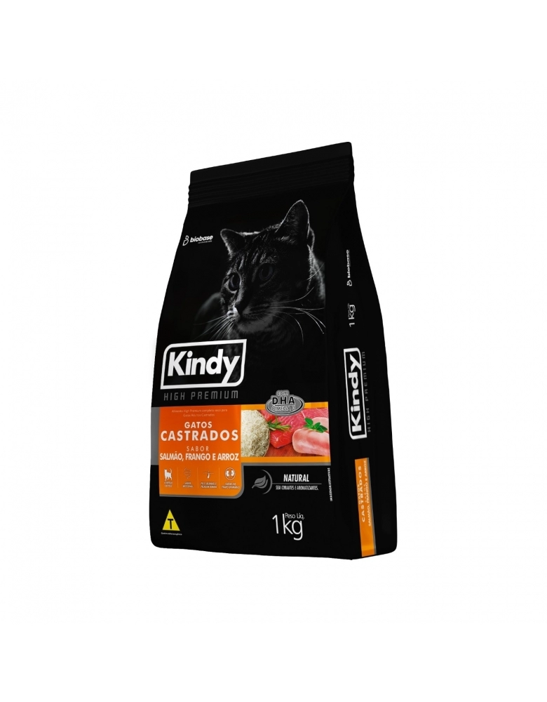 LINHA PET>RAÇÕES>GATO>RAÇÃO KINDY HIGH PREMIUM GATOS CASTRADOS 10,1 KG