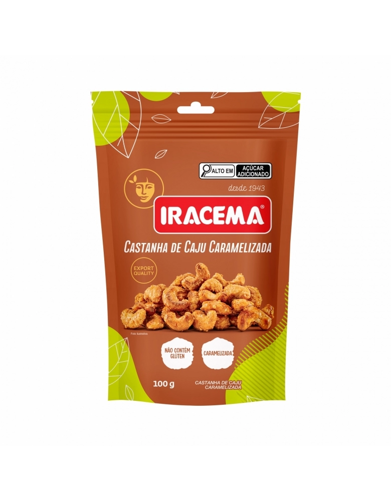 ALIMENTO>NUTRIÇÃO>GRÃO E CEREAL>CASTANHA DE CAJU CARAMELIZADA IRACEMA SACHE 100G