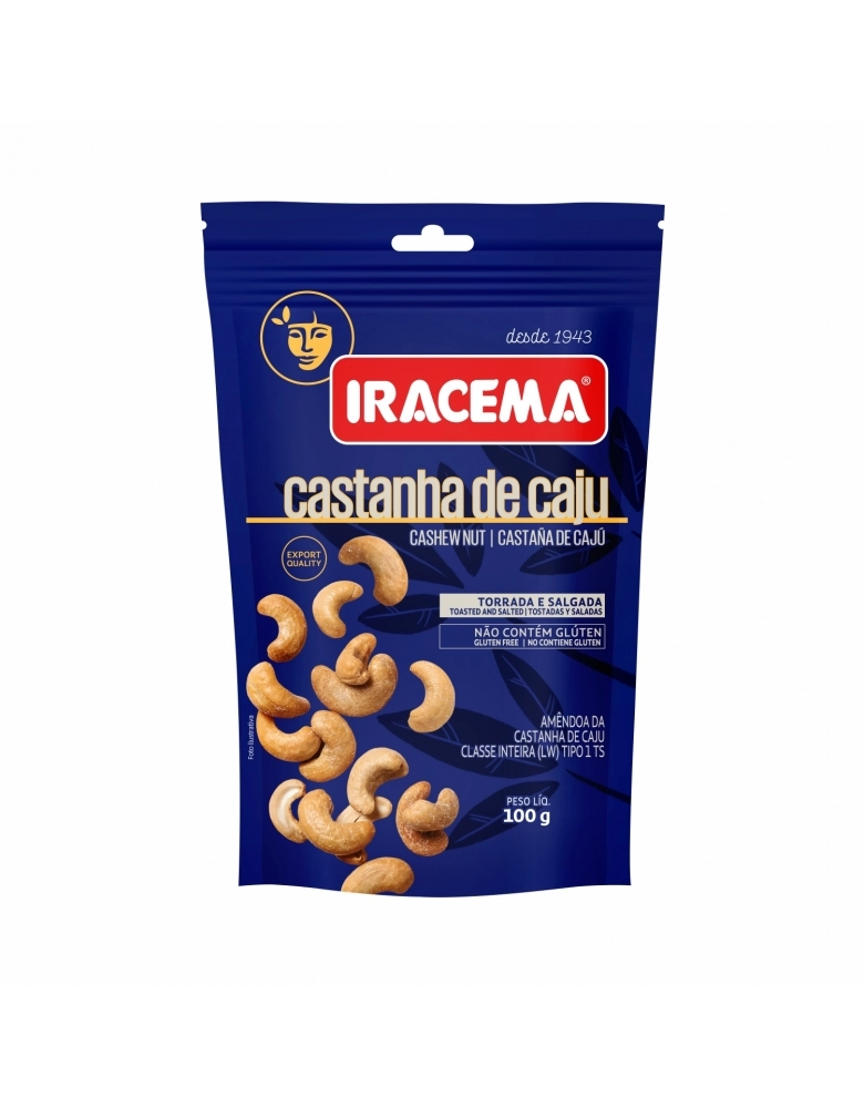 ALIMENTO>NUTRIÇÃO>GRÃO E CEREAL>CASTANHA DE CAJU IRACEMA SACHE 100G