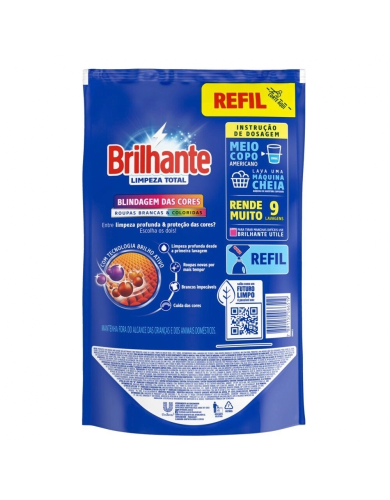 LIMPEZA>CUIDADOS DOMICILIARES>LAVA ROUPAS LIQUIDO>LAVA ROUPAS LIQUIDO BRILHANTE LIMPEZA TOTAL (SACHE) 900ML