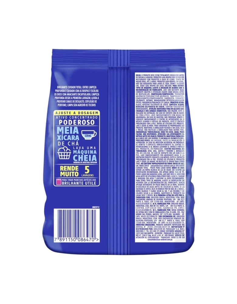 LIMPEZA>CUIDADOS DOMICILIARES>LAVA ROUPAS PÓ>LAVA ROUPAS BRILHANTE CUIDADO TOTAL (SACHE) 400G