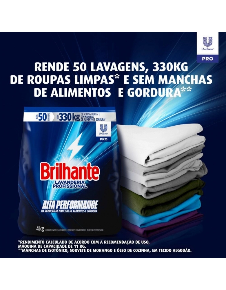 LIMPEZA>CUIDADOS DOMICILIARES>LAVA ROUPAS PÓ>LAVA ROUPAS PÓ BRILHANTE ALTA PERFORMANCE (SACHE) 4KG