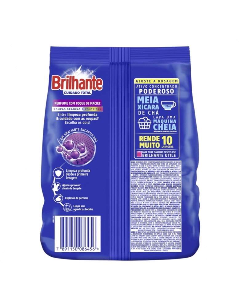 LIMPEZA>CUIDADOS DOMICILIARES>LAVA ROUPAS PÓ>LAVA ROUPAS PÓ BRILHANTE CUIDADO TOTAL (SACHE) 800G