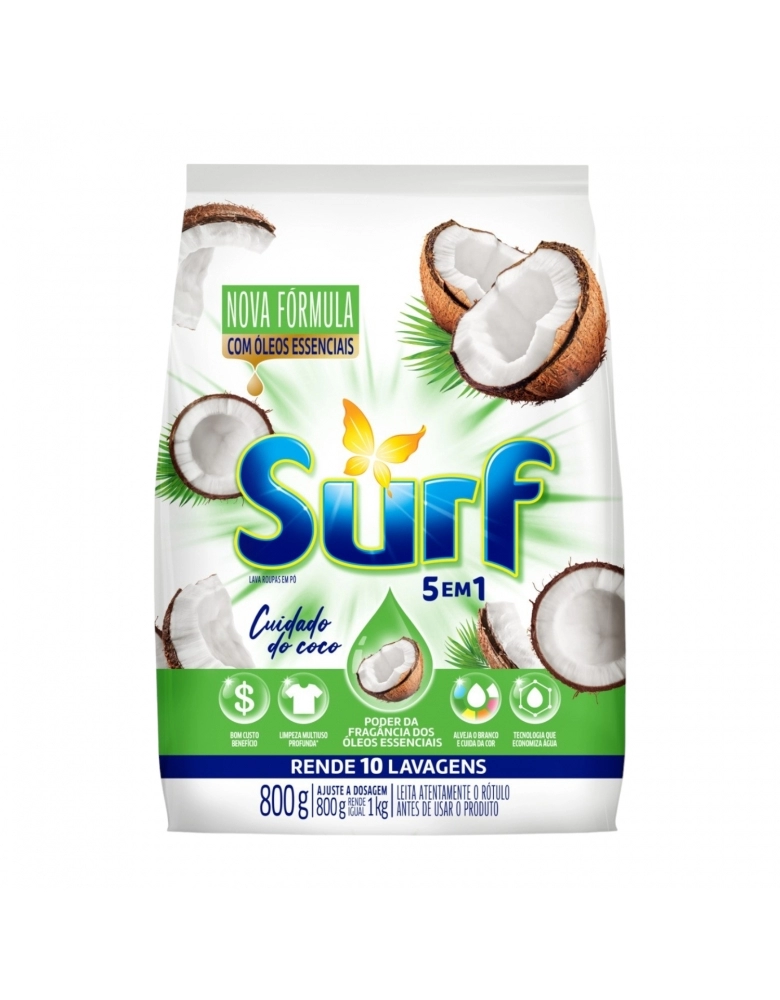 LIMPEZA>CUIDADOS DOMICILIARES>LAVA ROUPAS PÓ>LAVA ROUPAS PÓ SURF CUIDADO DO COCO (SACHE) 800G