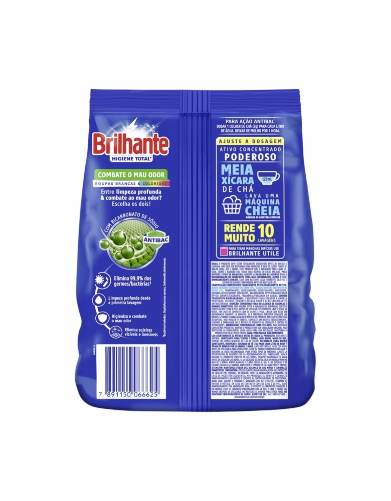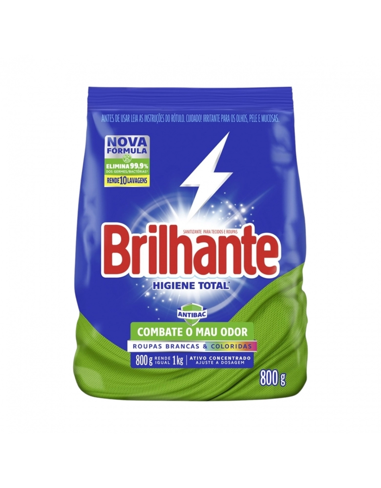 LIMPEZA>CUIDADOS DOMICILIARES>LAVA ROUPAS PÓ>LAVA ROUPAS PÓ BRILHANTE HIGIENE TOTAL ANTIBAC (SACHE) 800G