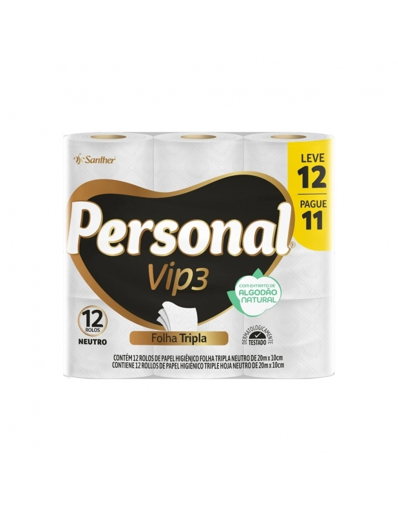 HIGIENE E PERFUMARIA>HIGIENE PESSOAL>PAPEL HIGIENICO>PAPEL HIGIENICO PERSONAL VIP FOLHA TRIPLA NEUTRO (20M) (L12P11) C/12 ROLOS